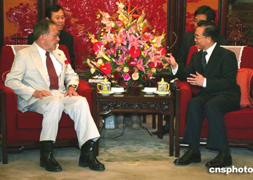在会见中,温家宝重申中国政府维护祖国统一的原则立场。他指出,台湾是中国领土不可分割的一部分,这一事实得到了《开罗宣言》、《波茨坦公告》、联大二七五八号决议的确认。自中美建交以来,美国历届政府都表示要奉行一个中国政策,布什总统也多次表明了反对“台独”的立场。