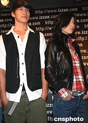 香港品牌Izzue于二○○四年八月初,两岸三地同步推出T恤图腾设计比赛,担任品牌形象设计总监的香港著名影星张曼玉,八月四日参加Izzue台湾省台北市旗舰店举行的记者会。作者:董会峰