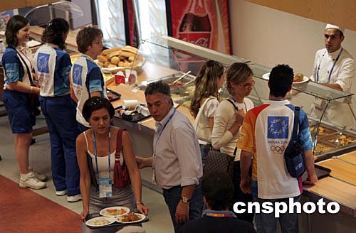 在雅典奥运会主新闻中心内,开设众多风味的美食供世界各地的记者选择,只不过都是“西餐”,而没有中餐等东方风味饮食。中新社记者:任晨鸣