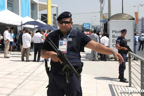 当地时间8月6日下午,雅典奥运会的所有场馆均提高了安保防范等级,在原有的警察防线外增加了荷枪实弹的军警,以防恐怖袭击。中新社记者:任晨鸣