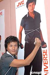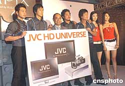 影星连凯、吴彦祖、陈子聪、尹子维8月6日在香港出席日本电气品牌JVC举行新一代等离子电视新闻发布会,四人携手为该产品代言,并于发布会上与JVC香港总代理合照。作者:邓庆乐