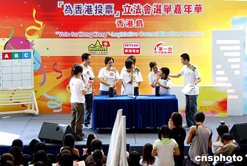 8月7日,香港电台在蓝湾广场举办“为香港投票-立法会选举嘉年华”,希望透过与民众同乐,加深市民对选举的认识。图为市民踊跃参加节目,一派气氛热闹。作者:洪少葵