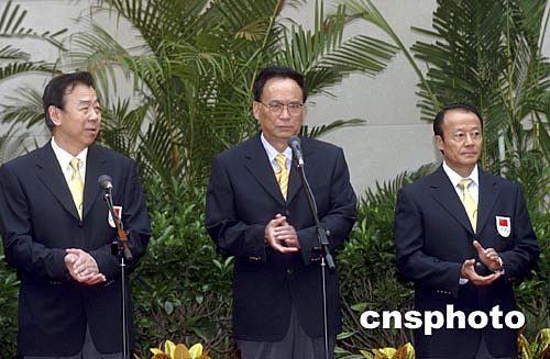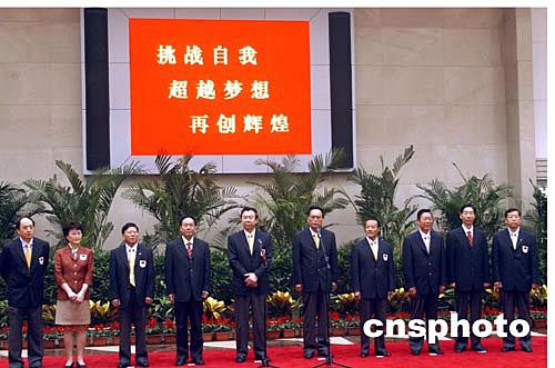 李志坚、袁伟民、李富荣出席欢送奥运军团仪式八月八日,由中国国家体育总局局长、中国奥委会主席袁伟民担任团长的中国体育代表团一行二百六十七人,乘专机起程赴雅典参加八月十三日开幕的第二十八届奥运会。国家体育总局、中国奥委会为代表团举行了送行仪式。中新社记者:武仲林