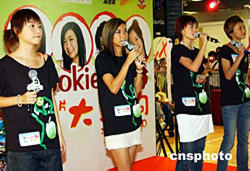 香港乐坛少女组合CooKies四名成员,周日在香港海运大厦出席“绿苹果正能量少年团”举行的义卖活动。作者:钱兴强