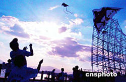 双休日,近百名影迷来到闽江畔,满怀喜悦放飞印有“蜘蛛侠”图案的风筝。时下,美国大片《蜘蛛侠2》在福州各大影院上映,受到众多青年观众的喜爱。作者:刘可耕