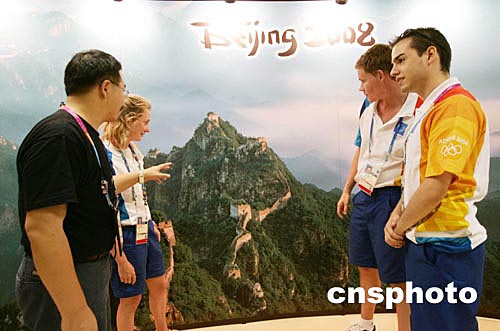 (当地时间)二○○四年八月八日,2008北京奥运会组委会在希腊雅典奥运会新闻中心设立展台,宣传北京奥运以及新北京的面貌。中新社记者:毛建军