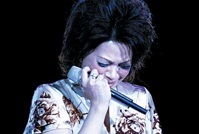 比较让观众激动的环节是最后的点唱部分。《出塞曲》、《忘不了》等观众网上投票选出的蔡琴最经典的歌曲被现场演绎。蔡琴还拿出了贴满黄金的金话筒,表示:“没有实力的人,是没资格站在这个话筒前面的!”十点钟左右,蔡琴唱了五遍《恰似你的温柔》,演唱会在她的哭泣中结束。(记者郝晓楠)