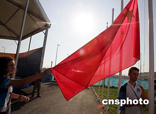中新社雅典八月九日电 雅典今天天气晴朗,北京时间下午两点,中国奥运代表团升旗仪式在奥运村内准时举行,前任国际奥委会主席萨马兰奇和中国代表团的一百多名团员参加了仪式。