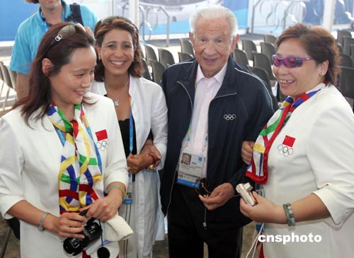 奥运村村长代表雅典奥运会简短发言欢迎中国代表团的到来,中国代表团副团长李富荣与村长交换了纪念品。