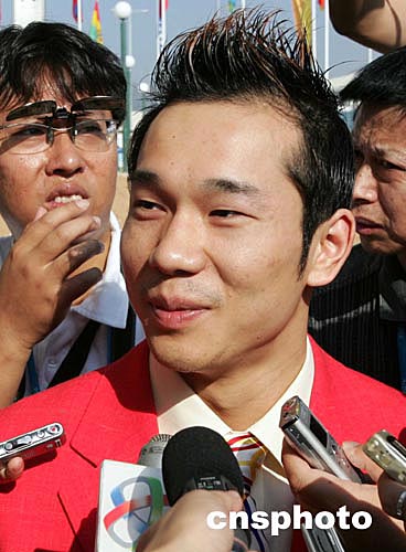 当地时间八月九日上午,参加雅典奥运会的中国男子举重六十二公斤级名将乐茂盛向记者表示,他的时尚发型可以帮助他树立坚强信念。中新社记者:毛建军