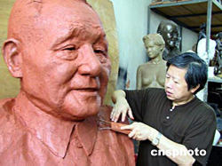 由上海市著名雕塑家唐世储创作的邓小平晚年塑像已经基本完成。据悉,该塑像高和宽各达九十公分,重约七、八百斤,将于近期在上海市纪念邓小平诞辰百年的艺术展上展出。八月十日,唐世储在工作室里为塑像作最后的修补与加工。作者:上海分社