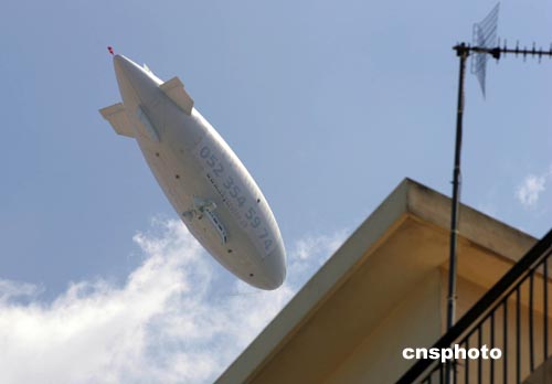 8月10日,一艘硕大的飞艇从雅典居民楼上空飞过。这架搭载了众多先进监视设备的齐柏林飞艇每天在雅典上空来回盘旋并不停拍照。部分雅典市民对此表示不满,他们认为飞艇威胁到他们隐私权。中新社记者:张炜