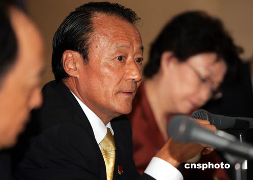 中国奥运代表团当地时间八月十一日在希腊雅典奥运会主新闻中心举行新闻发布会,代表团副团长李富荣(中)等回答记者提问。中新社记者:任晨鸣