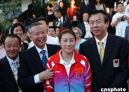 中国国家体育总局、中国奥委会、中国奥运代表团负责人王钧、李富荣、何慧娴、崔大林等,运动员代表田亮、郭晶晶等跳水队四人、女子曲棍球队队员八人与使馆及华侨华人代表同举杯。中国代表团与各方还互赠了纪念品。