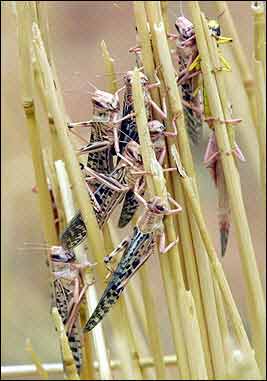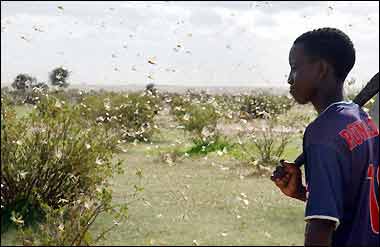 现在至少有一个蝗虫群抵达了乍得湖区,也就是临近苏丹达尔福尔地区的地方。由于这里的种族冲突,已经造成了1百万的居民缺少食物药品以及栖身之所。