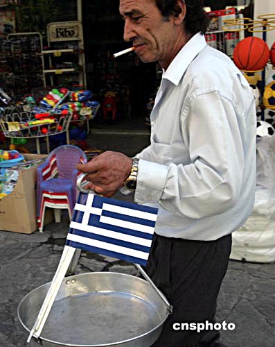 当地时间八月十二日,雅典奥运会开幕前夕,一名希腊老人带着本国国旗在街头行走,举手投足间弥漫着强烈的爱国热情。作者:任晨鸣
