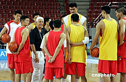 当地时间八月十二日下午,刚刚抵达雅典的中国男篮在雅典郊外的奥运会篮球馆训练。中新社记者:任晨鸣