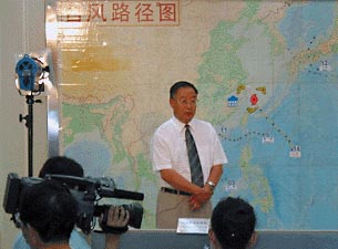 8月12日下午4时,秦大河来到中央气象台天气会商室,在台风示意图前现场拍摄,向广大电视观众发布台风警报:今天上午,浙江沿海已经出现了暴雨和10级以上大风,今天晚上到明天,受云娜台风的影响,浙江和江苏南部的沿海地区有10到12级大风;江南大部将有大或暴雨,部分地区有大暴雨或特大暴雨,并可能发生泥石流或山体滑坡等地质灾害。秦大河强调指出:云娜台风是自1997年以来在浙江登陆的最强的台风,提请有关单位注意当地气象台站的预报预警,做好防范措施。(宋云、大康)