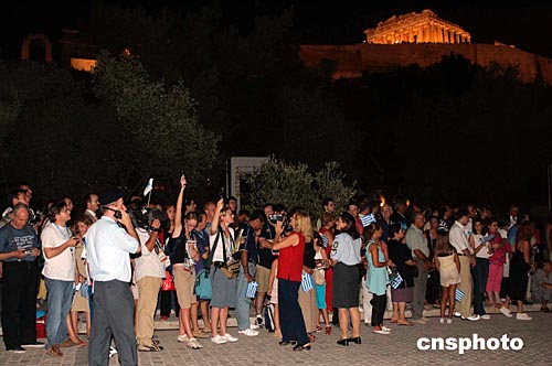 当地时间8月12日傍晚,奥运火炬即将到达雅典卫城,市民夹道迎接圣火到来。中新社记者:张炜