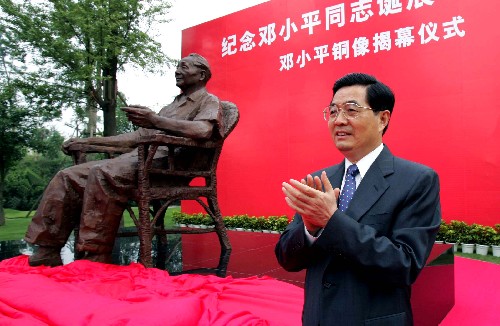 中新社广安八月十三日电(记者 肖龙联 杨杰)邓小平铜像揭幕仪式今天上午在小平家乡——四川省广安市隆重举行。中共中央总书记、国家主席胡锦涛出席仪式,并为铜像揭幕。