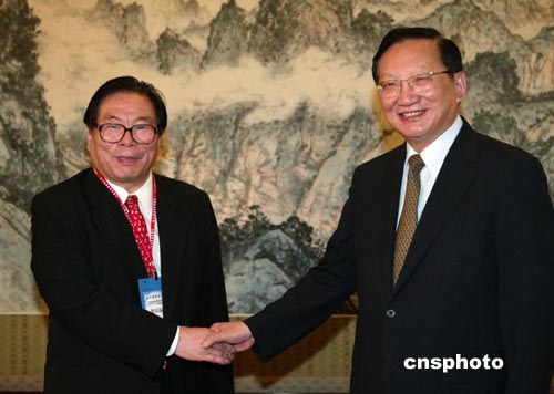 中新社北京八月十三日电(记者 邢利宇)国务委员唐家璇今天上午在中南海紫光阁会见了以会长杨孙西为名誉团长,常务副会长计佑铭为团长的香港九龙东区各界联合会访京团一行三十四人。