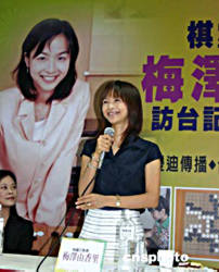 八月中旬,日本围棋美女、职业五段兼著名主持人梅泽由香里访台。她担任监制的动画片《棋灵王》风靡亚洲,据称在台湾也兴起一股围棋热,围棋人口剧增八十万。图为梅泽八月十三日出席台北记者会。中新社记者:董会峰