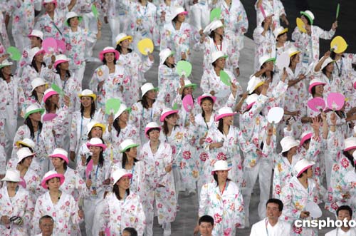 当地时间八月十三日晚,第二十八届奥运会在希腊雅典隆重开幕。图为日本代表团进入开幕式会场。中新社记者:毛建军
