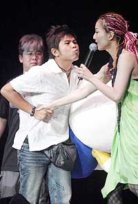当Sammi邀请3位歌迷上台合唱时,一位20几岁自称“五金“的男歌迷,一上台就忘形大叫:“好开心呀!”表现十分夸张,郑秀文已被他吓了一跳,怎知他随即公开向郑秀文表达爱意:“其实我仰慕你很久了!”观众即时嘘声四起!