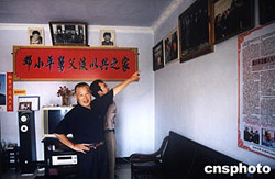邓小平百年诞辰前夕,邓小平的农民表弟淡文全特意在四川广安的家中布置一个简易展示板供游人参观。图为淡文全在介绍有关情况。中新社记者:肖龙联