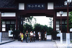 距离邓小平百年诞辰还有七天,前来小平故居四川广安旅游的游客激增,宾馆酒店生意火爆,景点景区人流如织,旅游热潮扑面而来。图为游客冒着酷暑参观邓小平故居。
