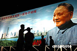 八月十五日晚,巨幅小平新画像高高悬挂,新画像伟人背后的背景是深圳新市容,展现特区深圳的新变化。在邓小平诞辰百年之际,深圳市民更加怀念敬爱的小平。作者:陈文