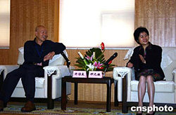 六十名台湾地方知名人士访问重庆并参加“巴渝--三峡文化交流”活动,八月十六日上午重庆市委副书记邢元敏、重庆市副市长吴家农等会见其中部分人士。图为邢元敏与台湾知名人士许信良亲切交谈。作者:郭晋嘉