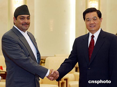 中新社北京八月十六日电(记者齐彬)中国国家主席胡锦涛今天下午在人民大会堂会见了尼泊尔王储帕拉斯,宾主进行了友好的谈话。