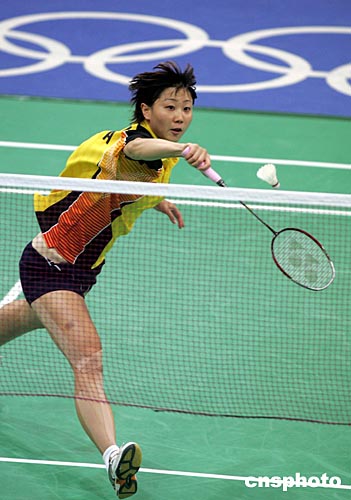 中国参加雅典奥运会女子羽毛球单打比赛的选手周密,当地时间8月16日以2比0轻松战胜保加利亚选手佩蒂娅,与队友张宁、龚睿那一同进入前四名。中新社记者:任晨鸣