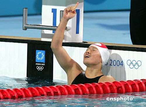 当地时间8月16日,中国选手罗雪娟以1分06秒64的成绩战胜了澳大利亚选手琼斯,打破奥运会纪录,夺得雅典奥运会女子100米蛙泳金牌,再次卫冕了世界女蛙王的头衔。这是中国代表团在本届奥运会上获得的第八块金牌。 中新社记者:任晨鸣