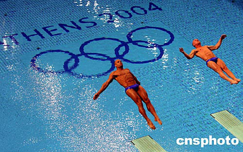 当地时间8月16日晚在雅典奥运会跳水馆,世界各国选手为实现各自的奥运梦想而从十米跳台纵身跃入湛蓝的碧波之中。中新社记者:任晨鸣