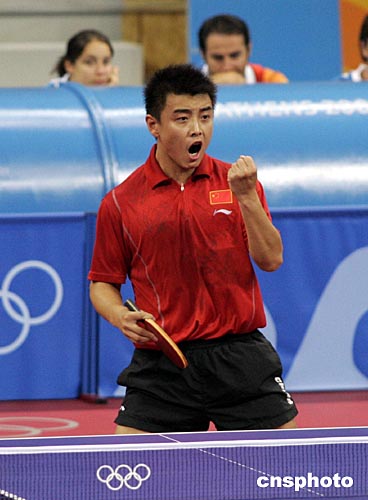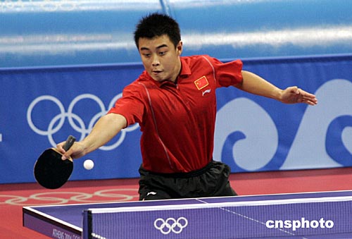雅典当地时间8月17日,首次参加奥运会的中国乒乓小将王皓以4比1打败德国老将罗斯科夫,晋级男单第四轮。中新社记者:张炜