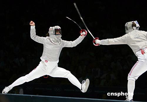 当地时间8月17日晚,中国女剑客谭雪在雅典奥运会女子佩剑决赛负于美国对手,非常遗憾地获得亚军。中新社记者:任晨鸣