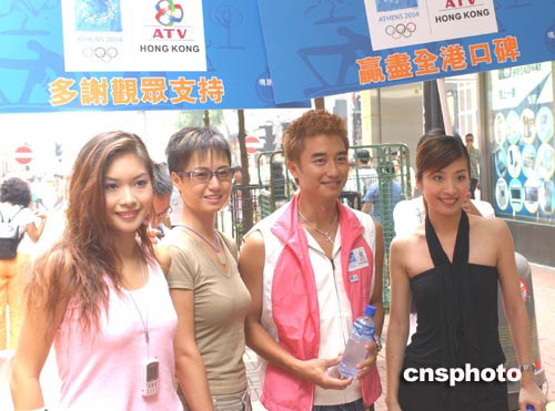 香港艺人18日在铜罗湾闹市为亚洲电视奥运节目造势。中新社记者:赵振清