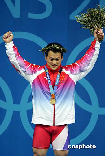 中新社雅典八月十八日电 (记者宋方灿)在中国代表团经历了十七日的“无金日”后,举重健儿再次在尼凯亚举重馆拉开奥运夺金大幕。张国政在男子六十九公斤级举重比赛中力拔头筹,摘得中国举重队的第三枚奥运金牌。这也是中国代表团在本届比赛中斩获的第十一枚金牌。