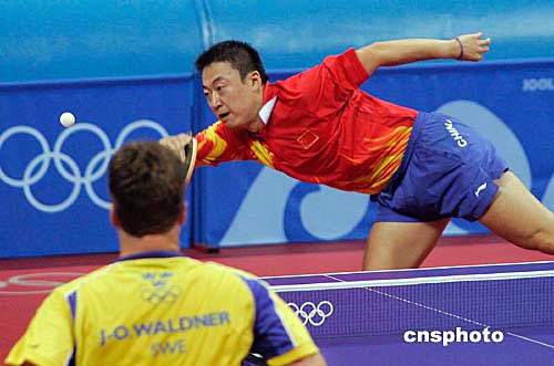 当地时间8月18日晚,世界排名第二十位的瑞典老将瓦尔德内尔神勇无比,以四比一淘汰了中国主力选手马琳。中新社记者:张炜
