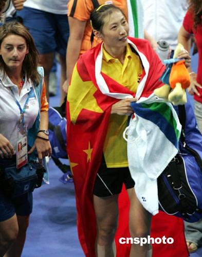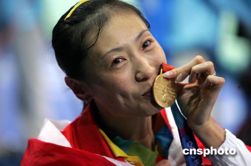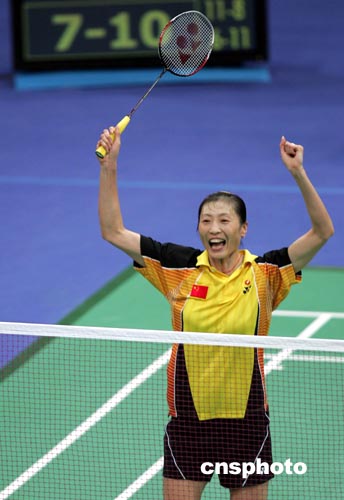 当地时间八月十九日下午,中国羽毛球名将张宁以2:1力克荷兰选手张海丽,获得本届奥运会女子单打冠军,从而使中国金牌总数跃升至12枚。中新社记者:任晨鸣