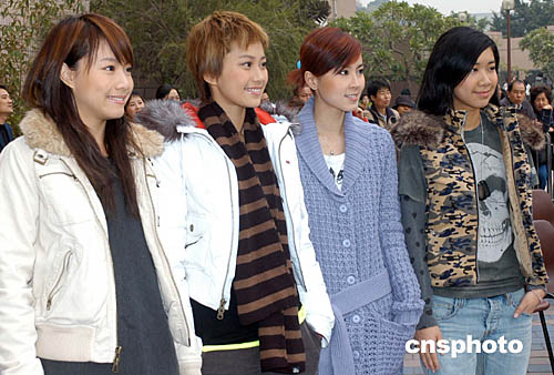 乐坛组合Cookies四名成员邓丽欣(Stephy)、杨爱瑾(Miki)、傅颖(Theresa)、吴家颖(Kary)(左起)1月4日在香港出席《爱心无国界演艺界大汇演》记者会,以发挥明星效应,呼吁人们关注南亚灾区。