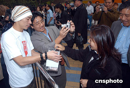 歌星许志安1月4日在香港出席《爱心无国界演艺界大汇演》记者会,内地游客捐款支持并与偶像合照。