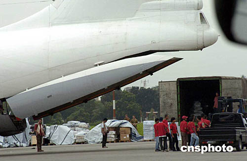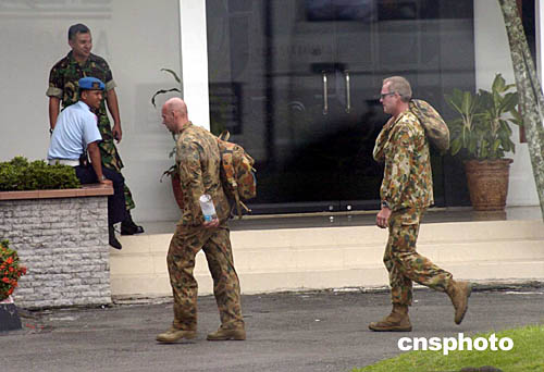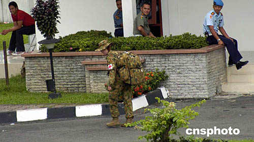 受到印度洋海啸灾难影响的印度尼西亚班达亚齐灾民撤离到棉兰市,世界各地的赈灾物品陆续运抵棉兰市机场,澳洲军人在棉兰机场参加救援工作。作者:洪少葵