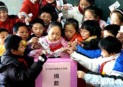 图:广西第一所孤儿学校为受海啸袭击的灾区捐款