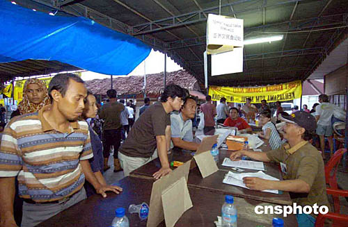 图:班达亚齐灾民在棉兰市收容所登记避难