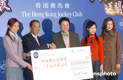 香港赛马界包括市民﹑马迷和员工透过马会的多个渠道慷慨解囊﹐为南亚地震海啸赈灾捐款3500万港元。中新社记者:赵振清