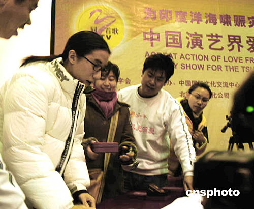“印度洋地震海啸事件”发生后引起了全球性质的爱心狂潮,自从以成龙为主的香港演艺界率先做出捐款行动后,内地演艺界马上紧紧跟上,开始进行捐款及各项爱心义演活动。张国立、冯小刚等12位中国艺人牵头的为灾区献爱心,昨天晚上随着“中国人爱心大行动文艺晚会”,画上了圆满句号。