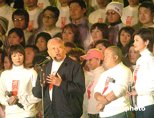 香港特区行政长官董建华7日晚出席在香港大球场举行的“爱心无国界”两岸三地新(加坡)马(来西亚)演艺界大汇演﹐呼吁香港市民踊跃捐款。中新社记者:赵振清